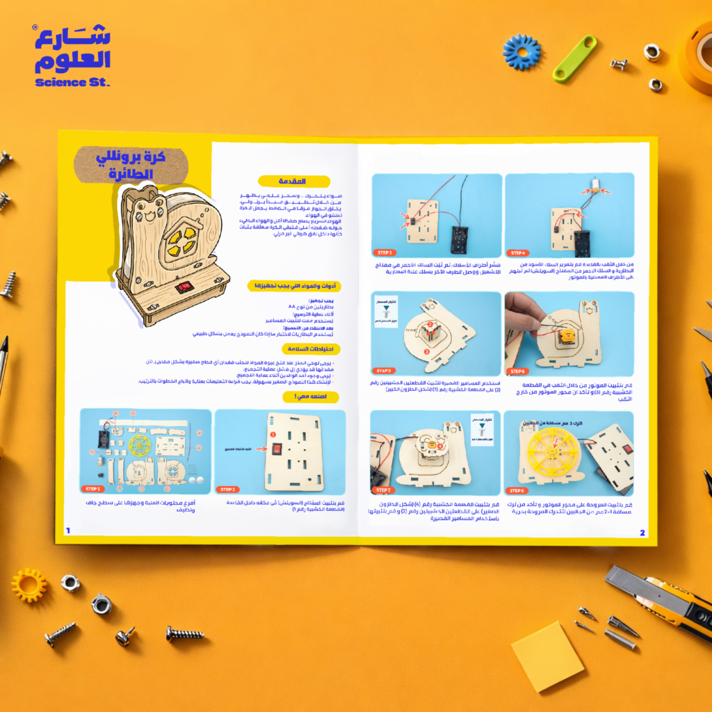 ابنِها… شغّلها… واختبر قوانين الفيزياء بنفسك,انطلق في مغامرة علمية تكشف أسرار الطيران. هل تساءلت يومًا كيف تطير الطائرات؟. كرة برنولي الطائرة تجربة علمية تفاعلية تُمكّن الطفل من فهم أسرار الطيران من خلال التطبيق العملي لمبدأ برنولي وتعرّفه كذلك على تأثير كواندا ودوره في توجيه الهواء حول الأسطح المنحنية. يكتشف المتعلم كيف تؤثر سرعة الهواء في الضغط، وكيف يولّد اختلاف الضغط قوة الرفع التي تجعل الأجسام تطفو في الهواء، ولماذا يلتصق الهواء بالجناح بدل أن ينفصل عنه. بدلًا من حفظ القوانين نظريًا، يخوض الطفل تجربة حيّة يلاحظ فيها الظواهر، يختبر الفرضيات، ويستنتج النتائج بنفسه