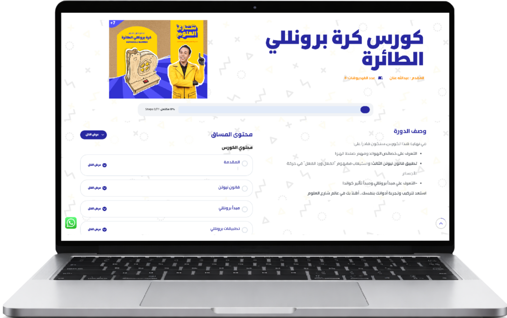 في هذا الكورس يكتشف الطفل كيف تؤثر سرعة الهواء في الضغط، وكيف يولّد اختلاف الضغط قوة الرفع التي تجعل الأجسام تطفو في الهواء، ولماذا يلتصق الهواء بالجناح بدل أن ينفصل عنه.يخوض الطفل تجربة حيّة يلاحظ فيها الظواهر، يختبر الفرضيات، ويستنتج النتائج بنفسه،