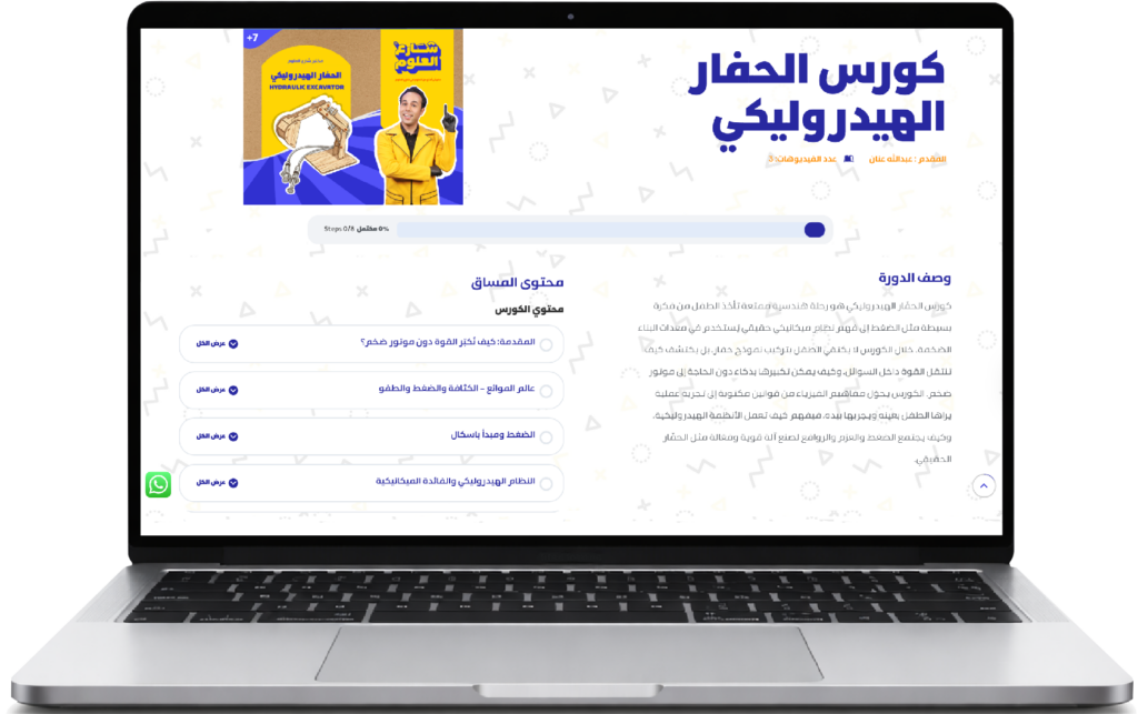 وصف الدورة التعليمية الخاصة بلعبة الحفار الهيدروليكي
