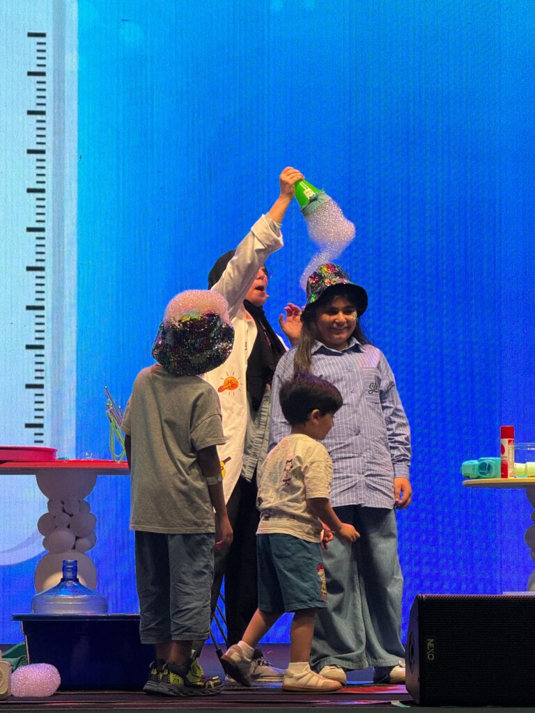 بروفيسور الفقاعات عالم شغوف بالتجارب والدهشة، يؤمن أن أبسط الأشياء يمكن أن تتحول إلى سحر علمي مدهش. لا يقدّم العلم بطريقة تقليدية، بل يحوّل الفقاعات إلى عروض مليئة بالإثارة والتجارب التفاعلية. من خلال الفقاعات العملاقة والتجارب المدهشة يكتشف الجمهور كيف تختبئ قوانين الفيزياء والكيمياء داخل فقاعة صغيرة، ليتحول الفضول إلى معرفة والمتعة إلى اكتشاف علمي.